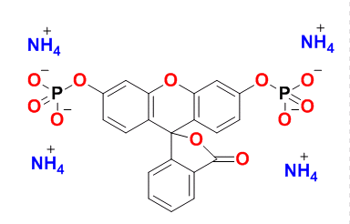 FDP [熒光素二磷酸酯四銨鹽],該產(chǎn)品在與磷酸酶相互作用后,無(wú)色和非熒光FDP被水解成高熒光熒光素,其表現(xiàn)出優(yōu)異的光譜特性,與配備有氬激光激發(fā)的大多數(shù)熒光儀器的最佳檢測(cè)相匹配。或者,F(xiàn)DP也可用于檢測(cè)發(fā)色模式中的磷酸酶,因?yàn)槊府a(chǎn)物(熒光素)表現(xiàn)出很大的消光系數(shù)(接近100,000cm-1mol-1)。在一些文獻(xiàn)中,F(xiàn)DP被認(rèn)為是最敏感的熒光磷酸酶底物之一。FDP已廣泛用于各種ELISA測(cè)定。此外,它還用于檢測(cè)酪氨酸磷酸酶。FDP是熱不穩(wěn)定的,需要特別注意保存固體樣品和儲(chǔ)備溶液。